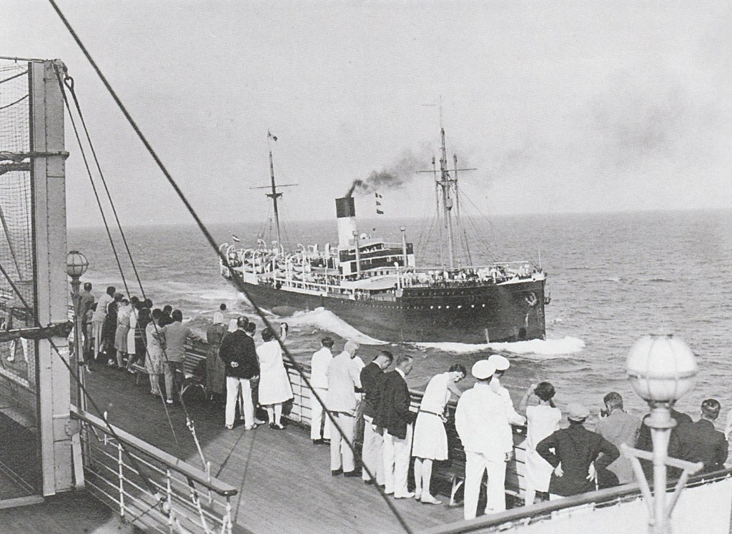 On the Cap Arcona steamed, making good progress across the Atlantic. Already by the 24th of November at 9pm, the Cap Arcona came within sight of the island of Tenerife, off the coast of Africa. A wonderful surprise had been set for them as they passed the harbour of Santa Cruz on Tenerife: The Governor of the island had been a long-time friend of Commodore Rolin, and knew of the ship approaching. And so, when the Cap Arcona sailed by, the residents of the island launched fireworks lighting up the night sky in a truly beautiful display as a greeting. This memory would stay with everyone for a lifetime, as the green, red and blue lights shone down on the ship as she sailed past. These weren’t the only friends the Cap Arcona would pass by: the next day on the 25th shortly before 2 o’clock, the passengers received the message they would be passing the Cap Norte, another ship of the Hamburg Süd in 8 minutes. In no time at all, the upper decks were full of passengers clutching binoculars and cameras. When the two vessels met there was much cheering, music and celebration as people on both ships sang the national anthem, celebrating the great flagship of the Hamburg Süd on her maiden voyage. Both liners blasted their whistles, and were distant specks within minutes.