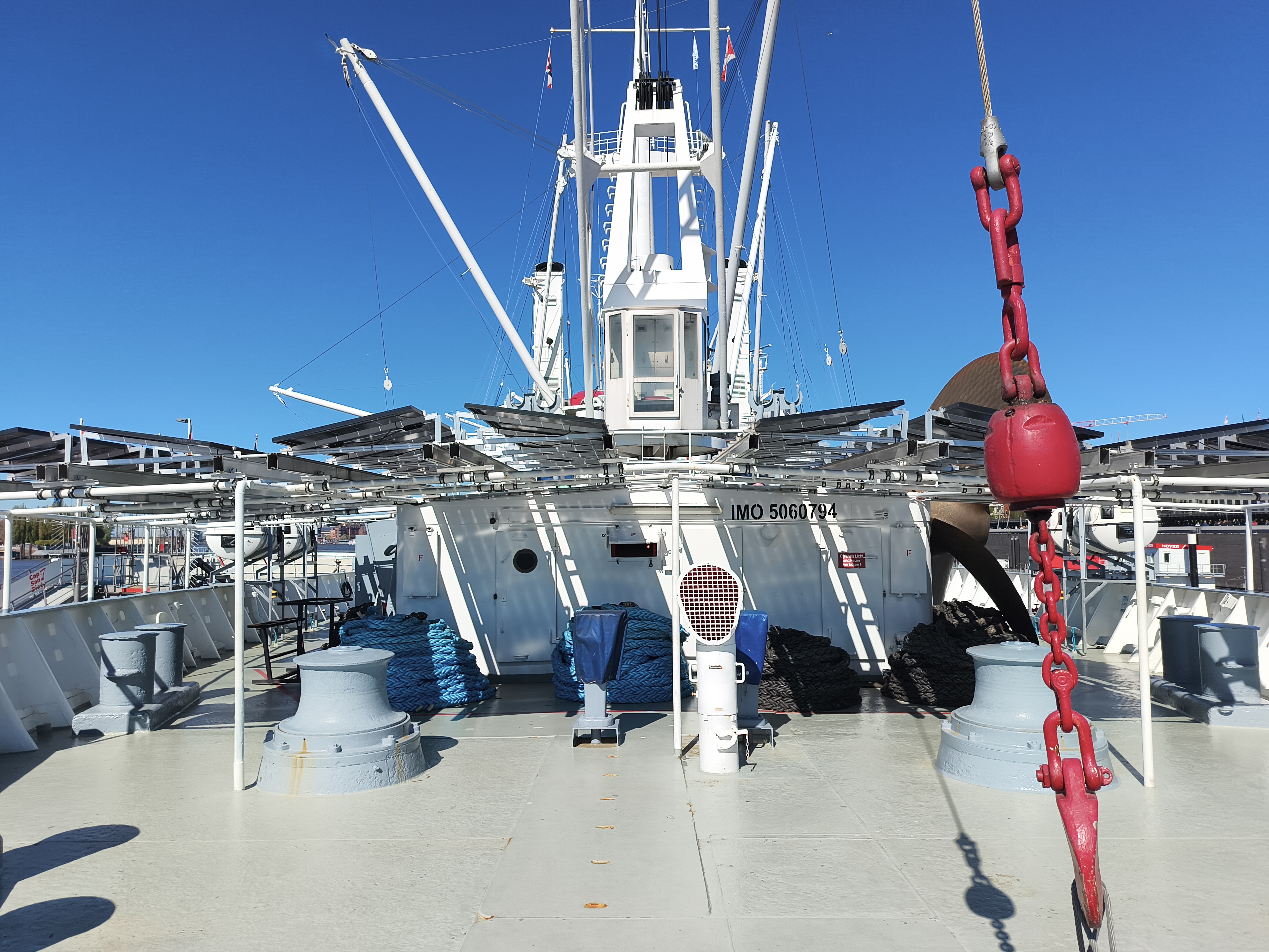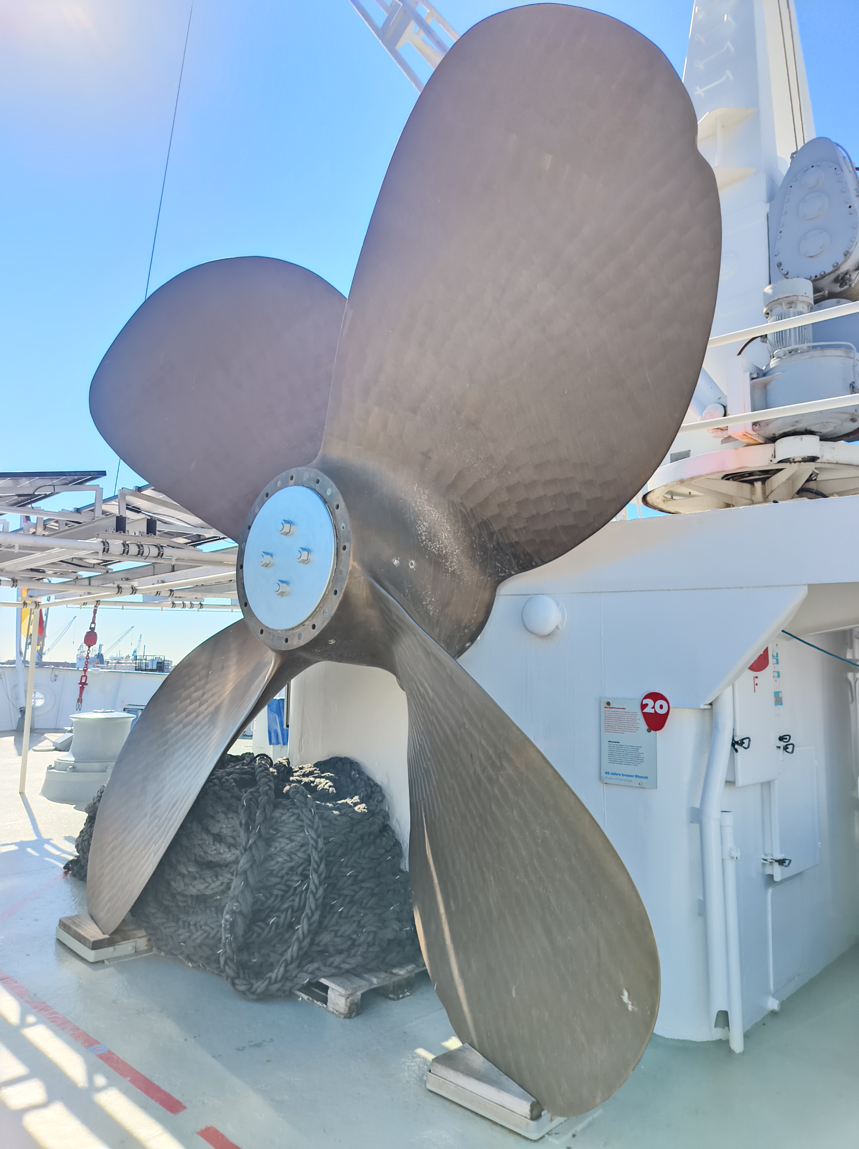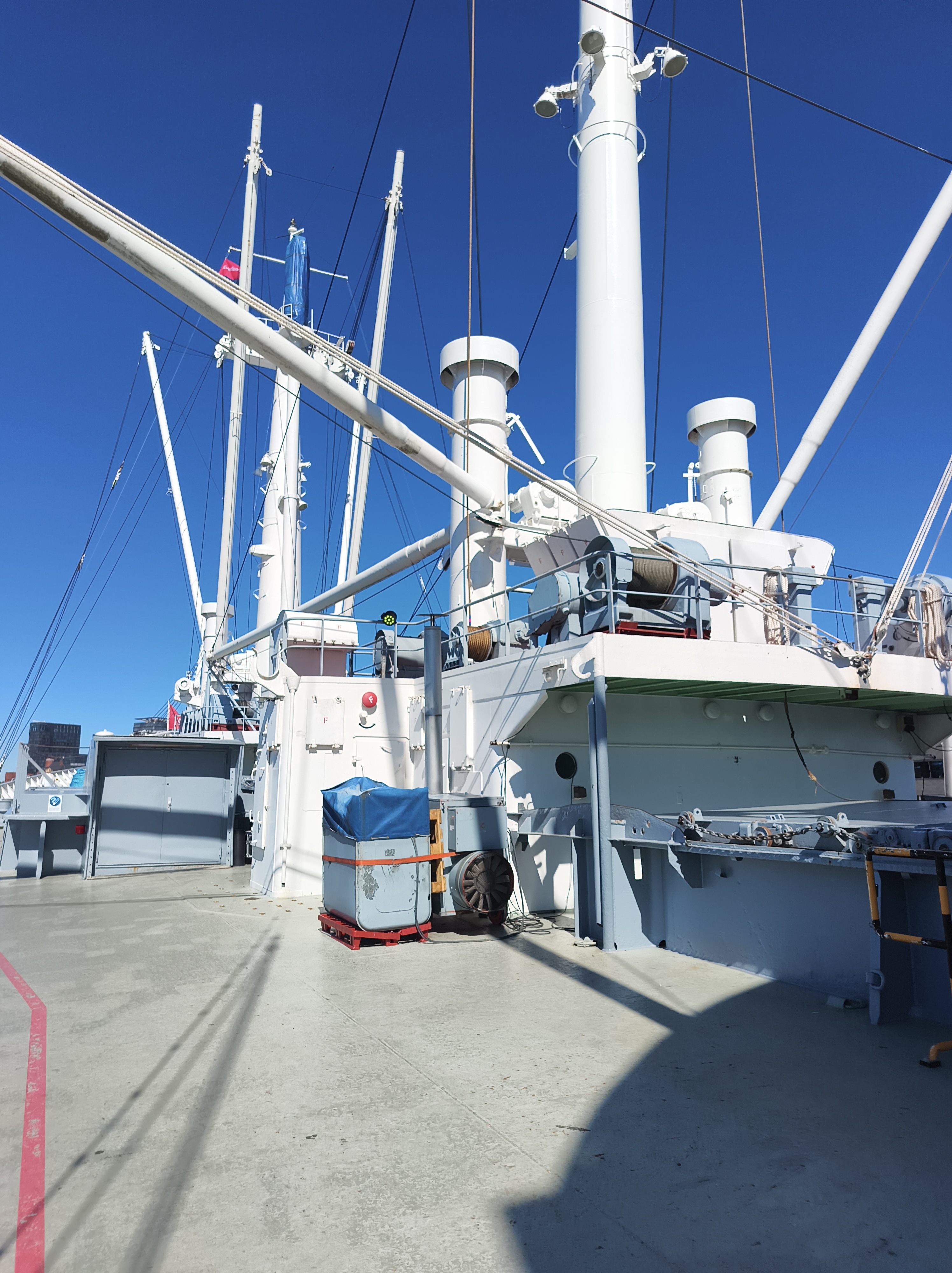 Up on deck, we got to bear witness to a demonstration of the ship’s equipment by a crew member. He operated one of the cargo booms with ease to hoist up a cage with cardboard onto the ship from the pier beside her. It’s little moments like these when you realise that preservation doesn’t mean the end of a ship’s life, every little aspect of the Cap San Diego seemed to be alive and fired-up like the 60’s never passed.