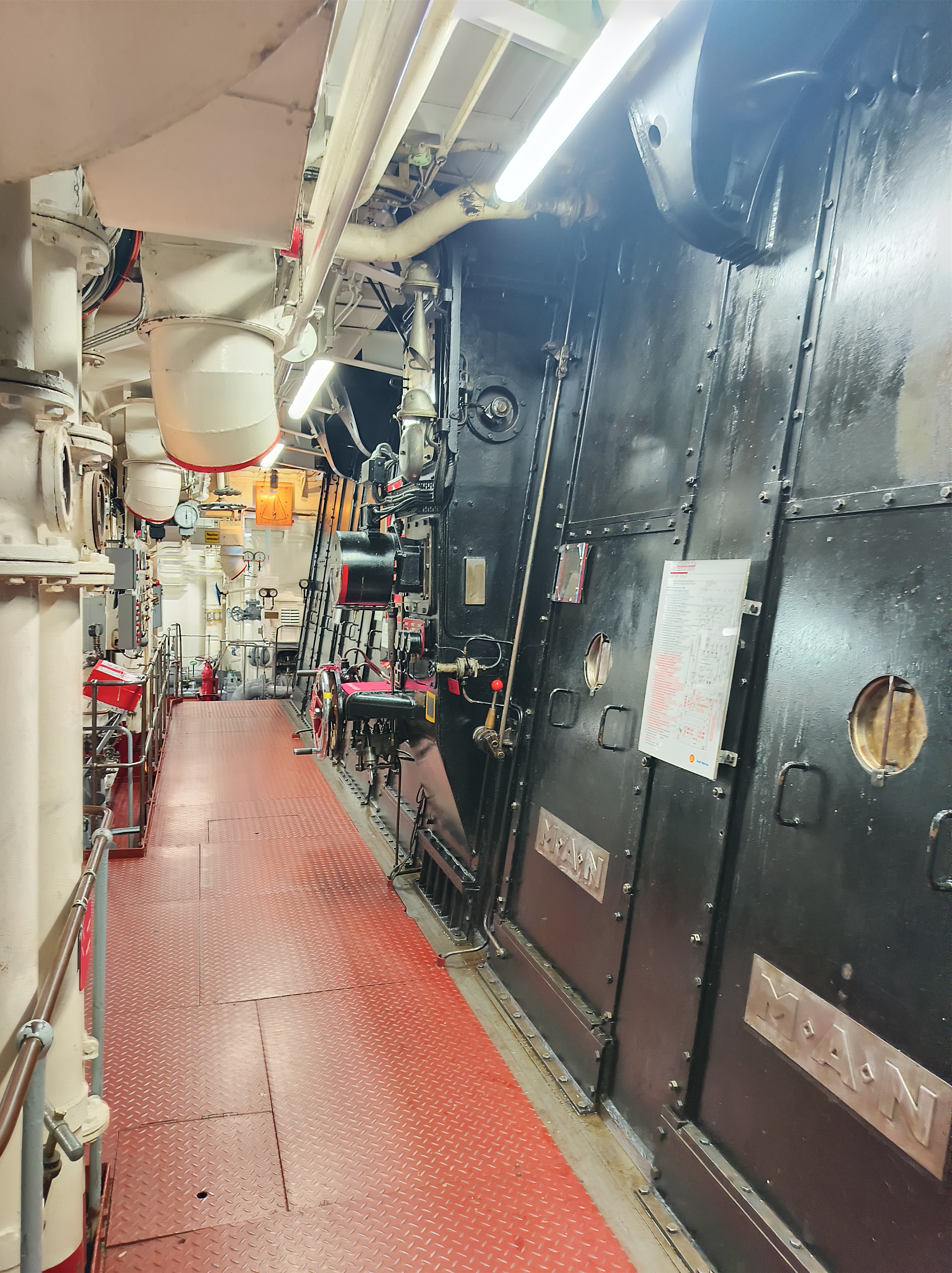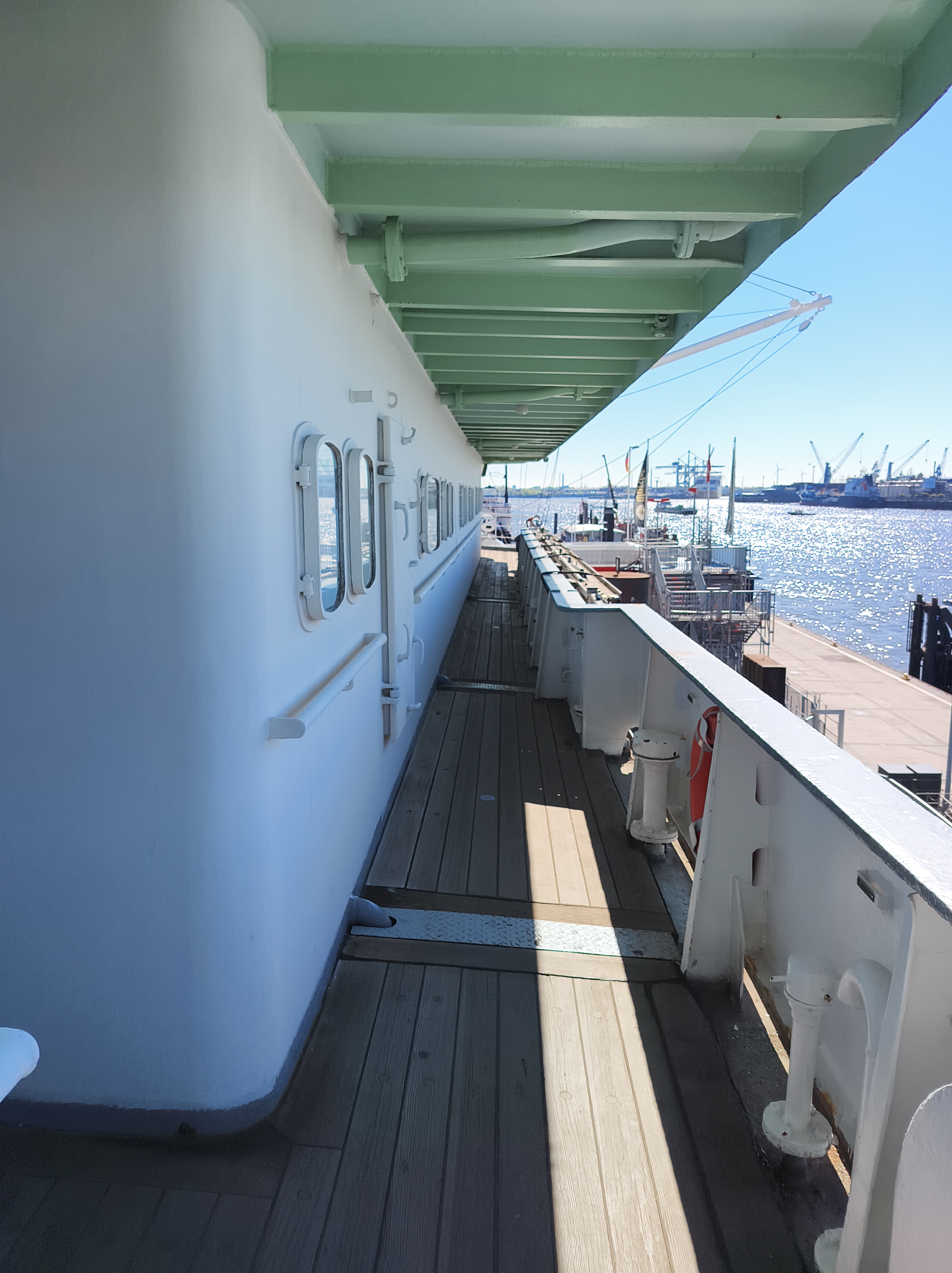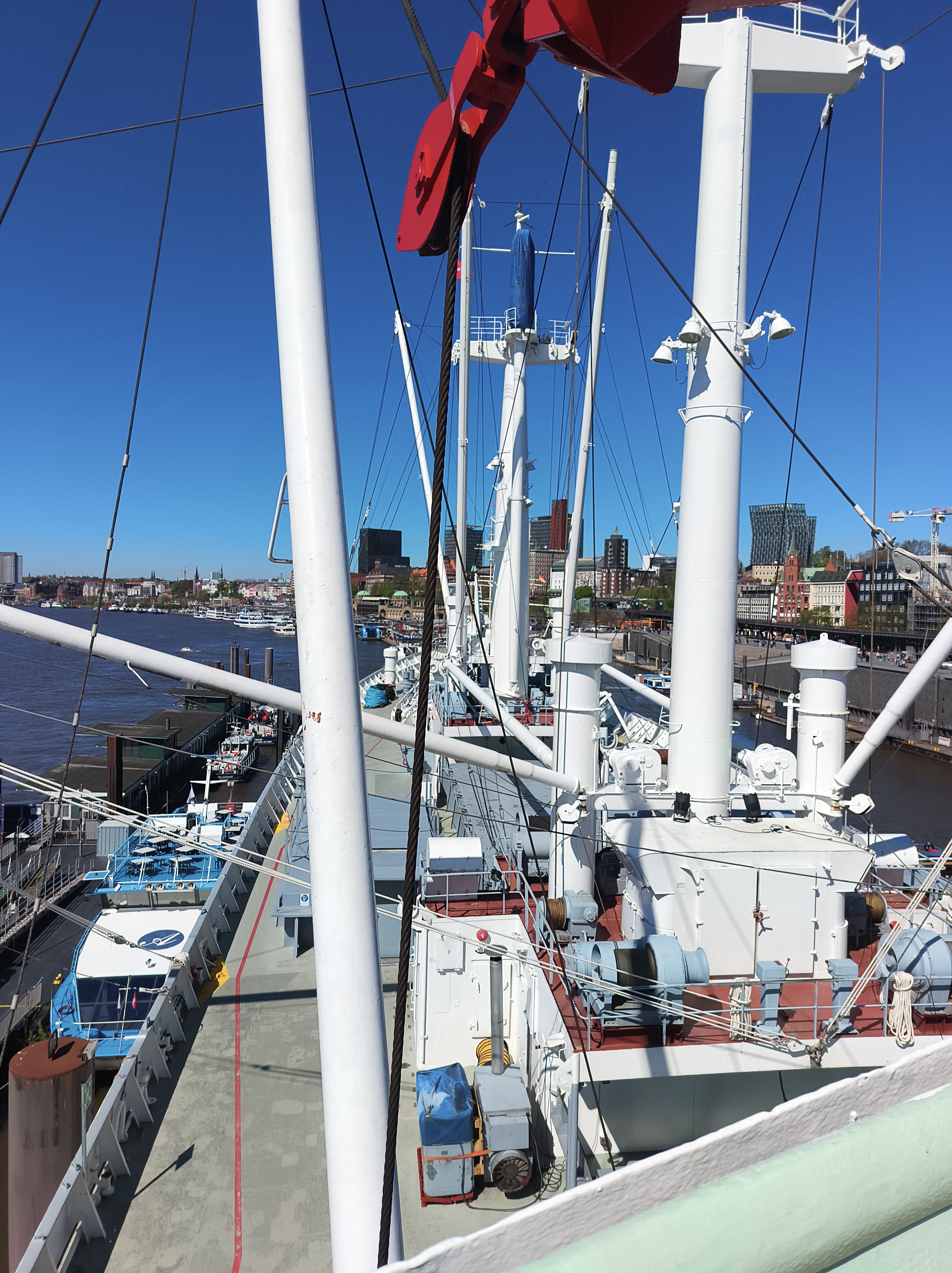 That finally happened and she was sold to a Chinese breaker. But, by a miracle she was saved from the scrapheap by her own City of Hamburg for the purpose as a museum ship and mixed-use facility. She was taken back home, flawlessly restored back to her Hamburg Süd glory, and staffed by an excellent crew of former sailors who keep her in perfect working order to this day. She is still seaworthy, and everywhere you go is nothing but authentic.