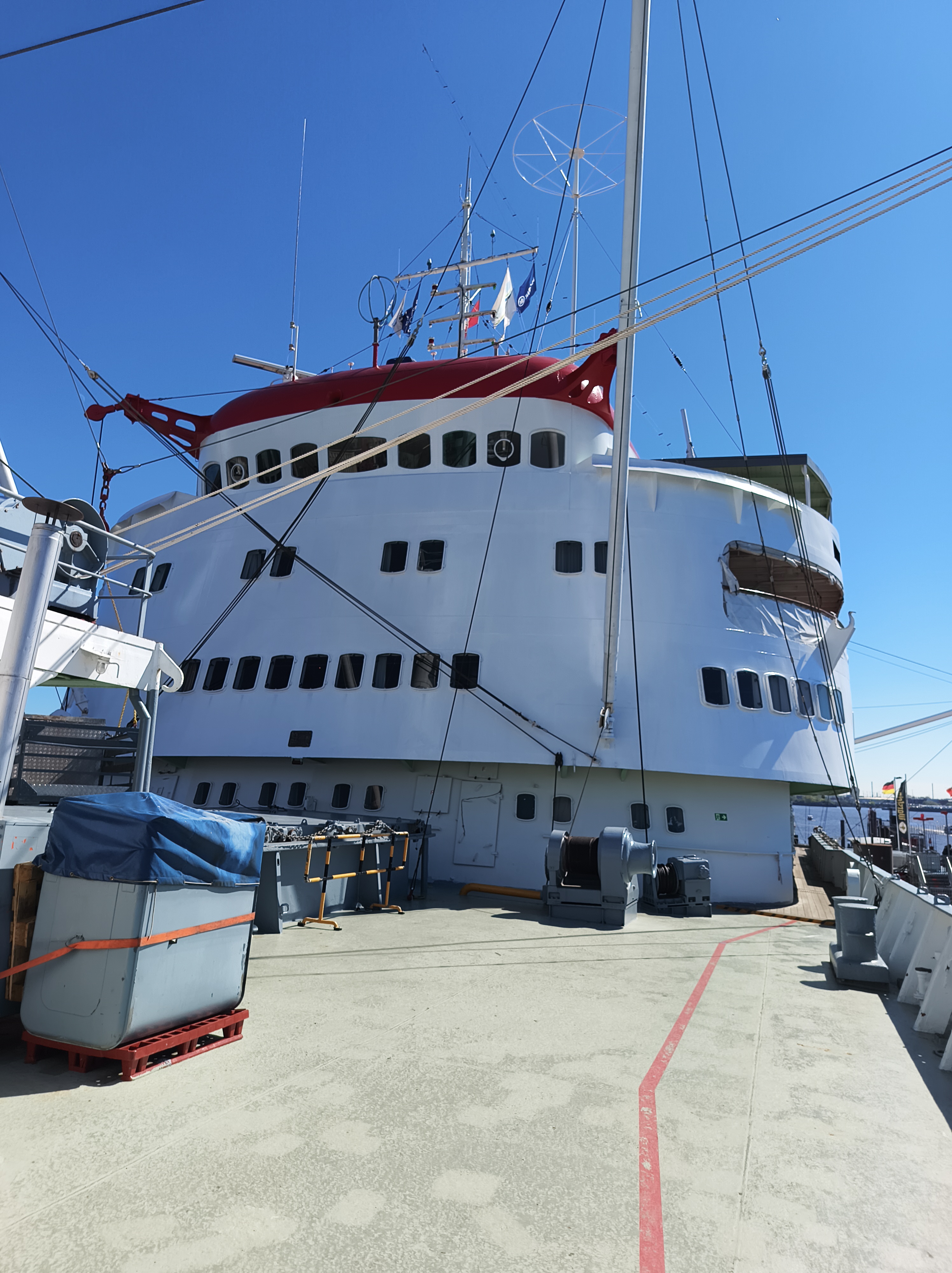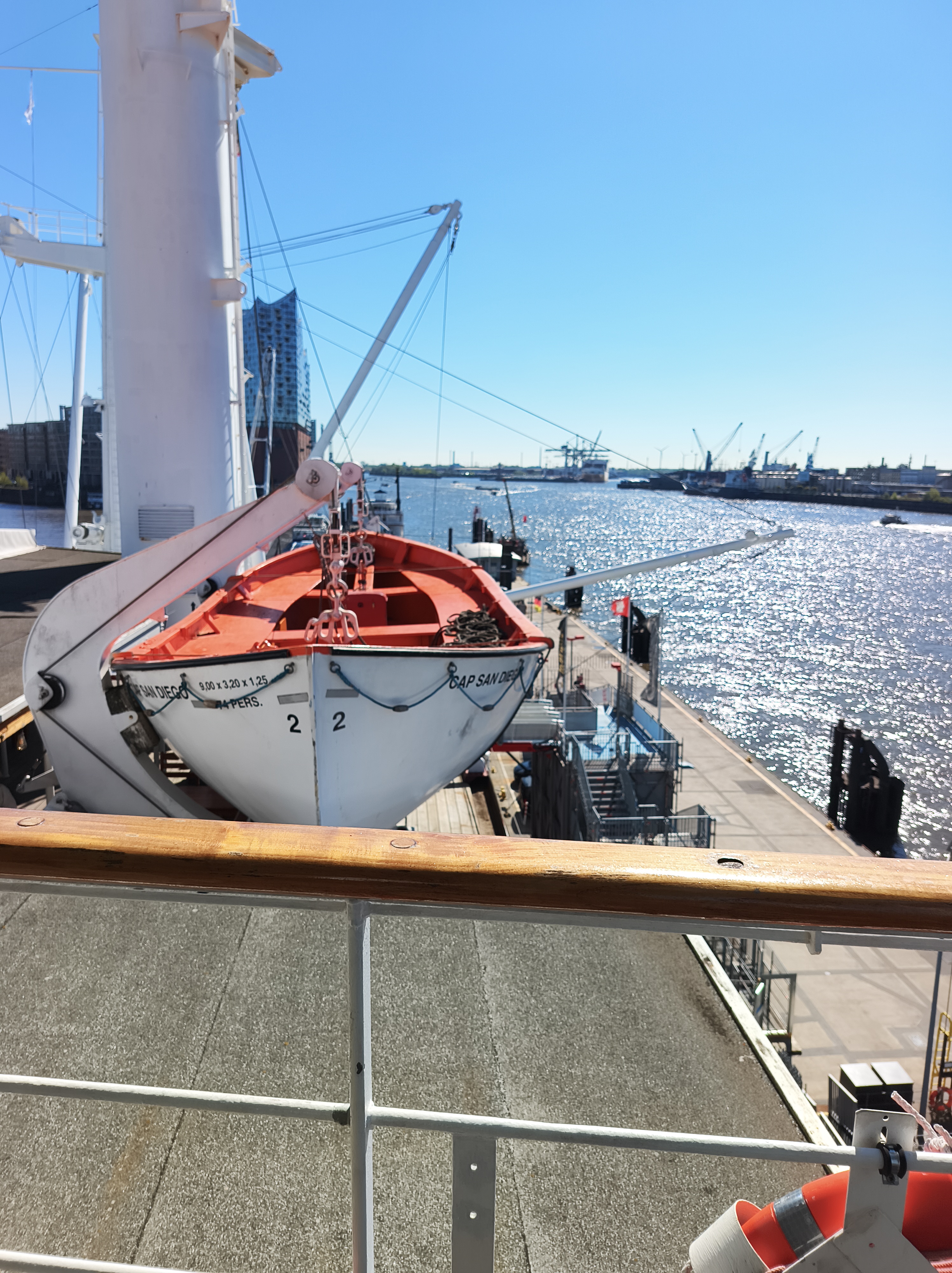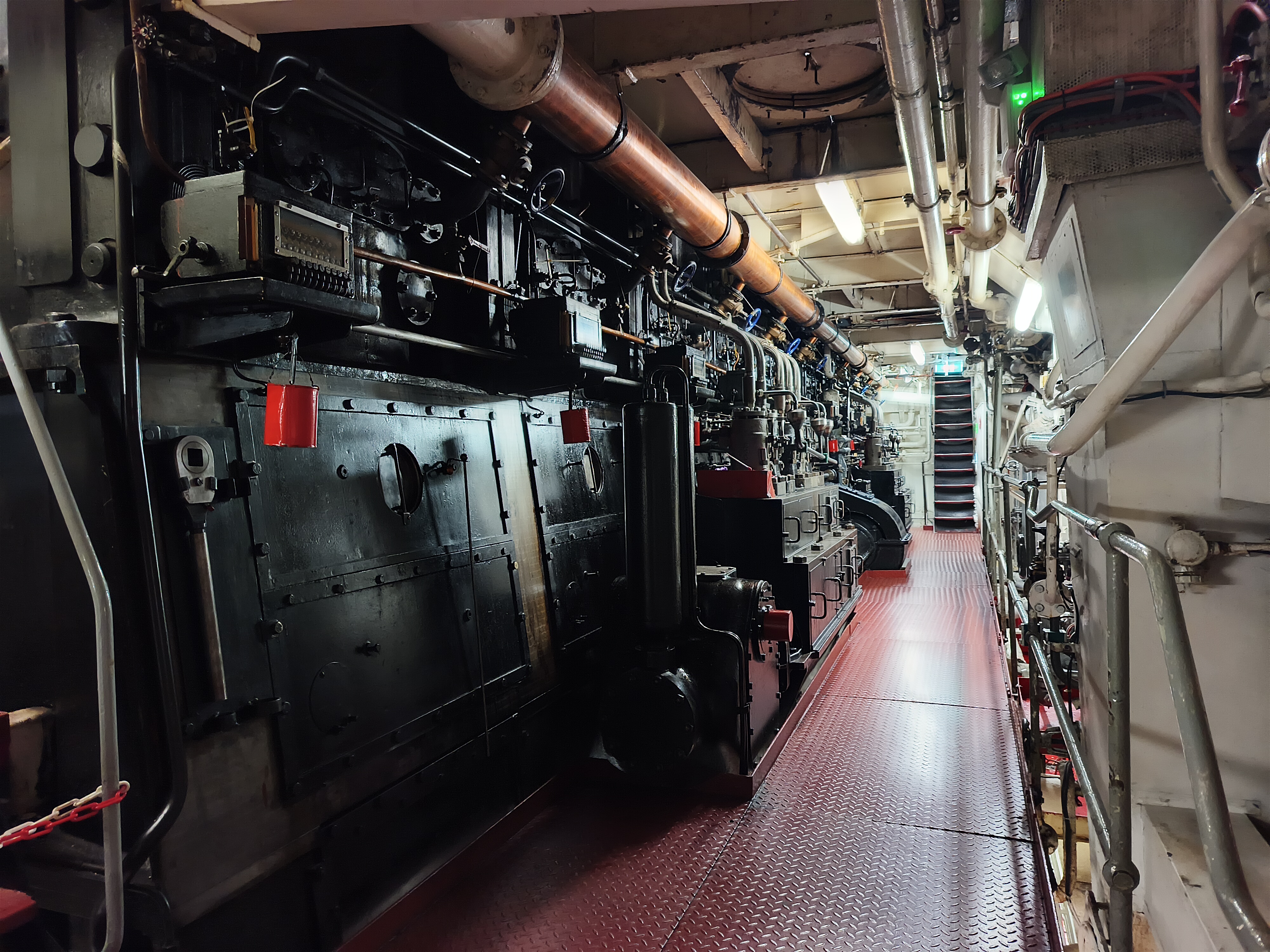 That finally happened and she was sold to a Chinese breaker. But, by a miracle she was saved from the scrapheap by her own City of Hamburg for the purpose as a museum ship and mixed-use facility. She was taken back home, flawlessly restored back to her Hamburg Süd glory, and staffed by an excellent crew of former sailors who keep her in perfect working order to this day. She is still seaworthy, and everywhere you go is nothing but authentic.