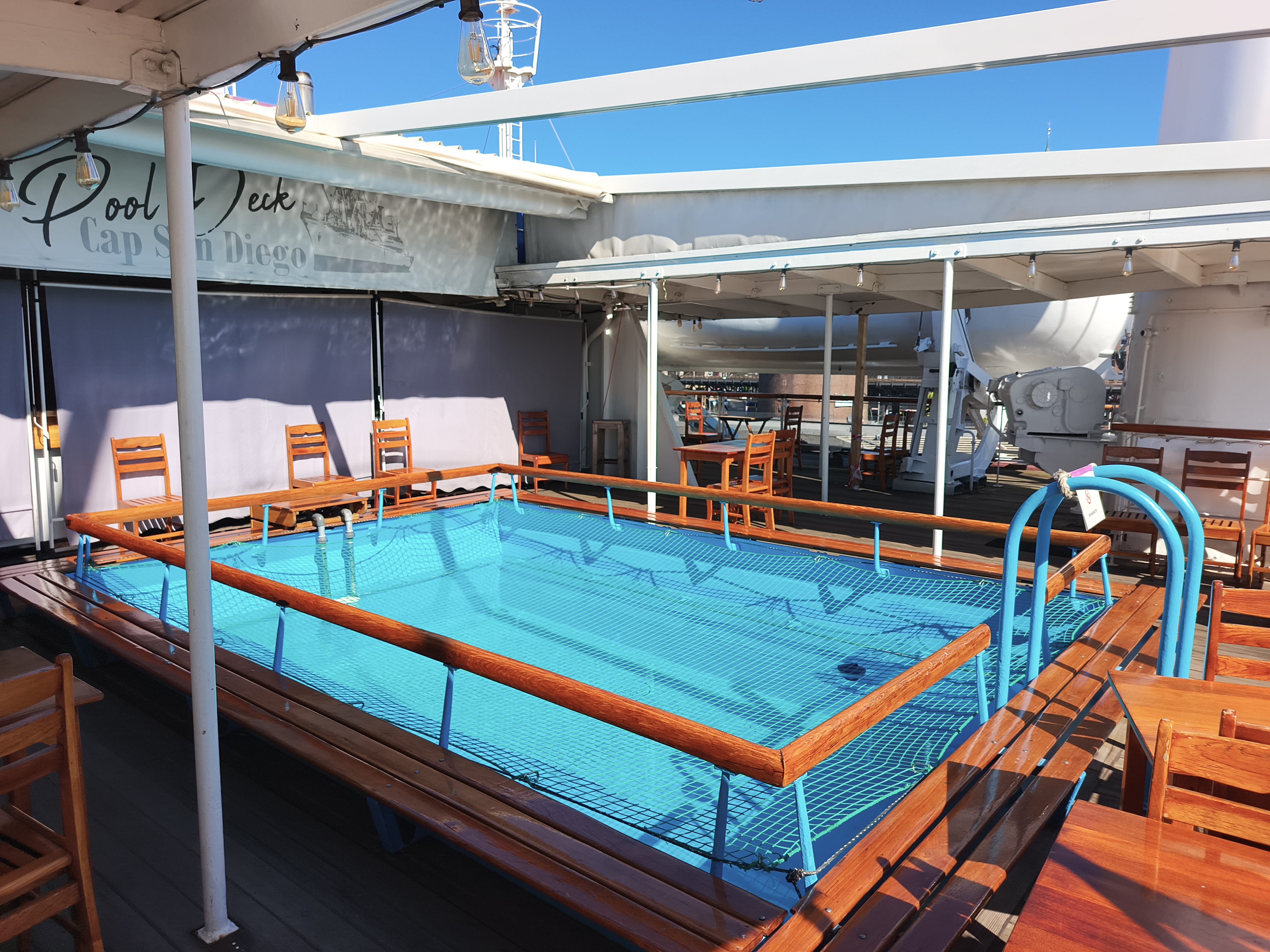 A floating hotel is the dream that many large passenger vessels hope to achieve in their retirement. Cap San Diego was custom-built with luxurious staterooms for 12 passengers, and even gave them a lounge, bar, dining room and swimming pool with 2 stewards to cater to their needs. These facilities are essentially unchanged from her days in service, and so some of that famed Hamburg Süd attentiveness and service lives on today.