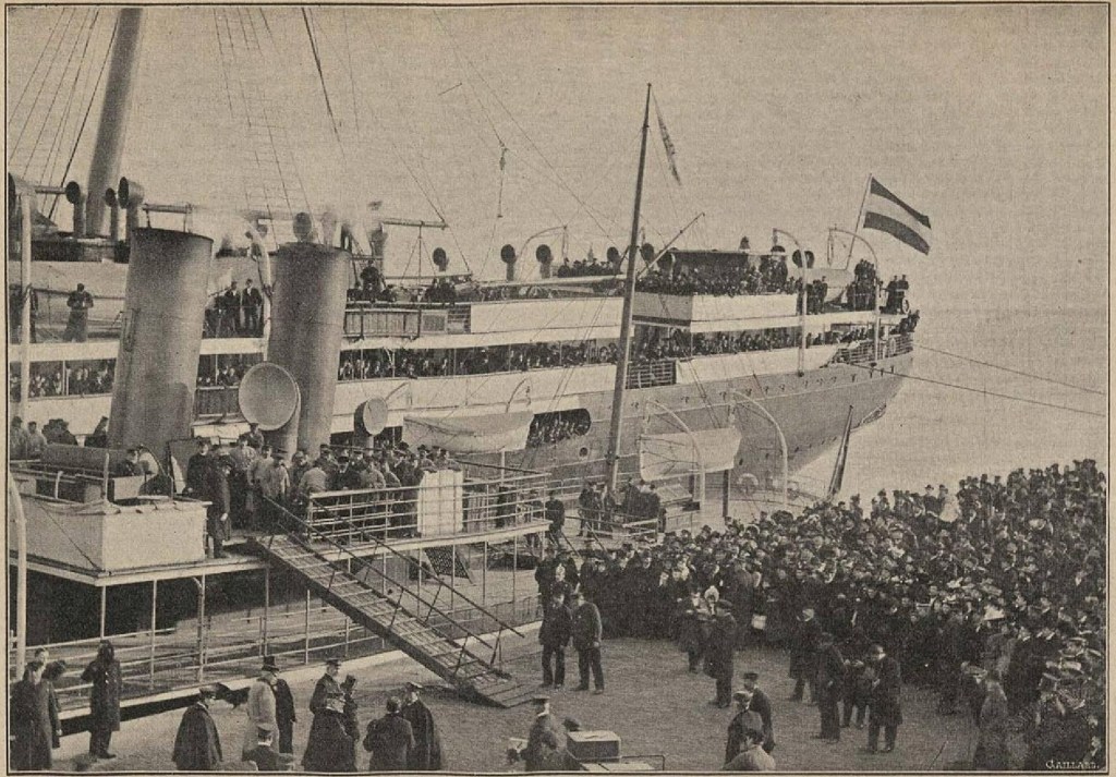 On February 10th Prinz Heinrich travelled with Kaiser Wilhelm II from Berlin from Potsdam. The next evening the Kaiser gave a farewell dinner to his brother with United States Ambassador, Mr. White present. At midnight the Prinz took a train to Kiel and and would stay there another four days. Finally, on February 15th Prinz Heinrich travelled to Bremerhaven where the Kronprinz Wilhelm would depart from. It was the afternoon when he would board the great liner in Bremerhaven in front of a large crowd. He first boarded a tender docked beside the wharf, and then stepped aboard the Kronprinz tied up next to the tender. The nearby forts all fired their guns in a salute, then the anchor was raised by Captain Richter and the ship set off on this incredibly sensationalized state visit.