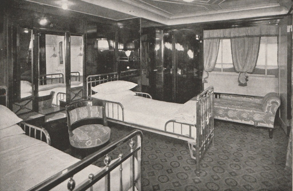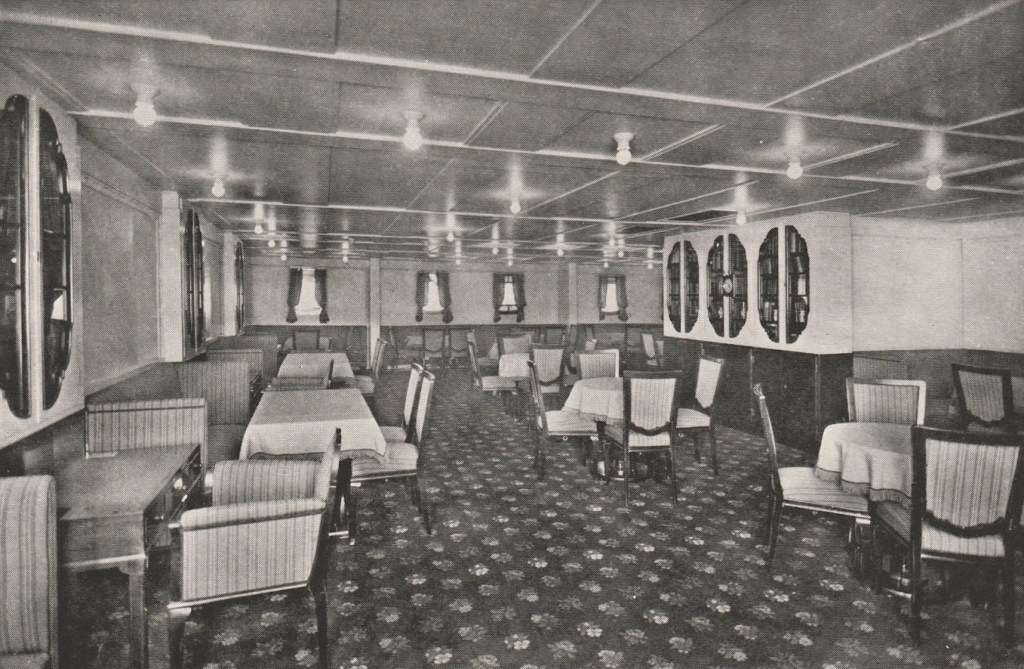 When finally completed for the White Star Line, Homeric was very well equipped for her duties when service would commence with her maiden voyage in 1922. Her greatest asset was her furnishings and inside decoration as the liner was marketed as being: “fitted up exactly like a modern hotel”. This meant she had windows instead of portholes in areas, staterooms with proper beds instead of berths, and each First Class stateroom had its own private bath and telephone line.