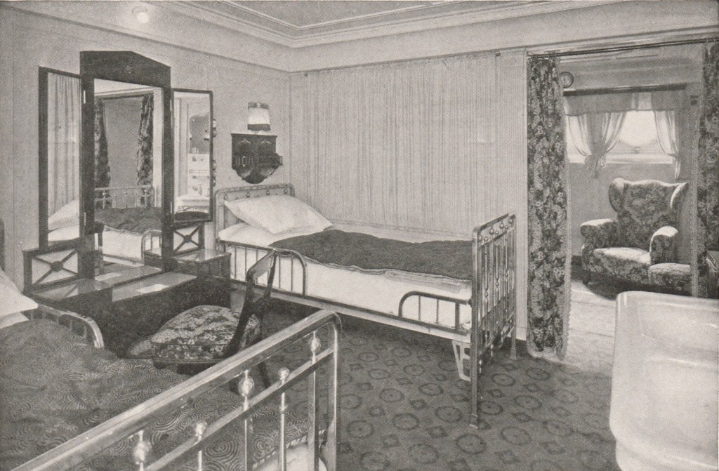 A Deck consisted mostly of cabins too, but also had the Inquiry Office, Purser’s Office and Telephone Room. This deck housed the largest and grandest cabins on the ship, her private suites, and almost every cabin was equipped with private baths.