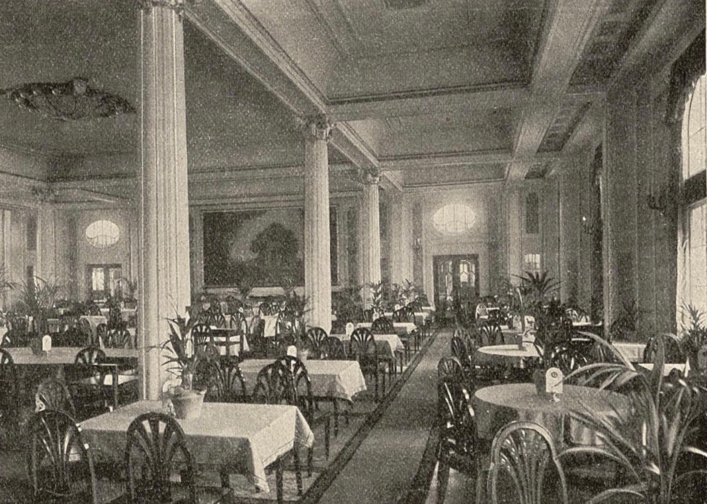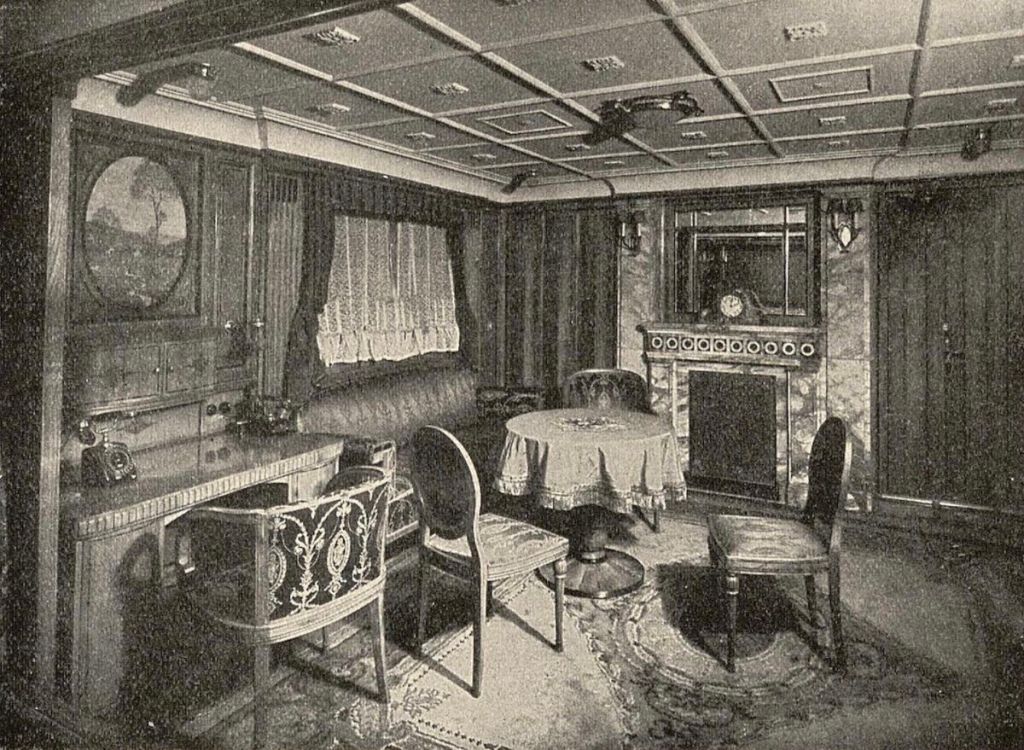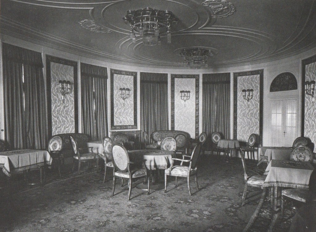 The Wintergarten of the ship was a masterpiece in itself, consisting of yellow marble terraces and fountains surrounded by the foliage of many tropical plants. Tropical birds such as parrots, macaws and toucans all were housed in this room as well.