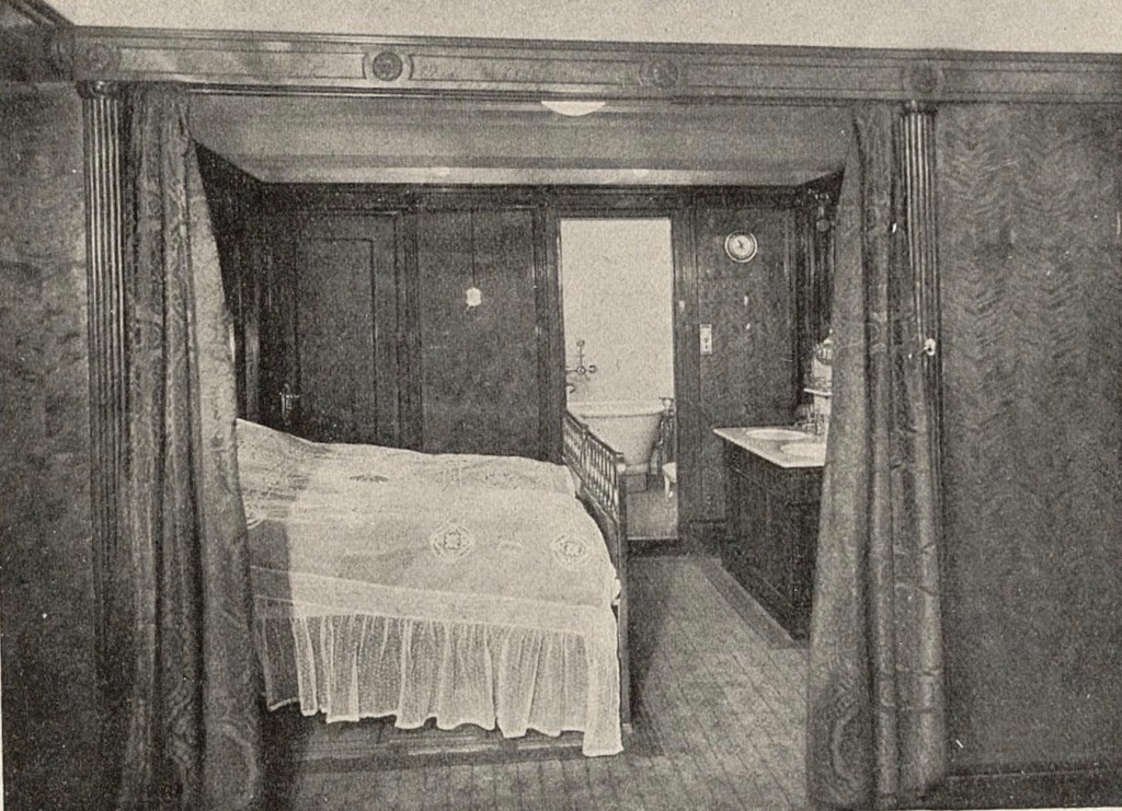 The lavish interiors of the Cap Trafalgar took full advantage of her British tie, and many parts were dedicated to the famed British Commander: Horatio Nelson. The Cap Trafalgar’s first captain: Commodre Langerhannß was a huge scholar of Nelson, and actually supervised the decoration of the First Class Smoking Room and Library with many portraits of Nelson’s major exploits and many other places around the ship bore portraits of the man himself. The deluxe cabins and even confections served by the chefs were named after prominent British and French men from the Battle of Trafalgar.