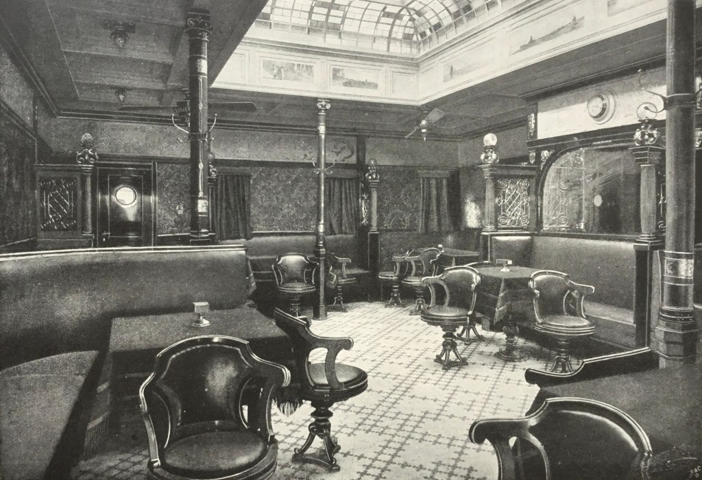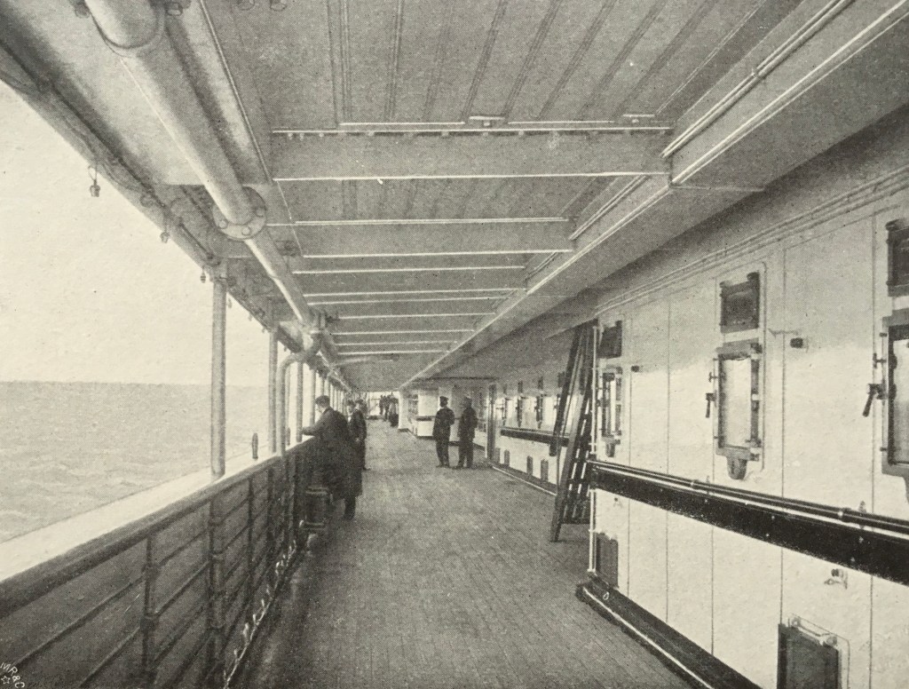 The interior decor of the Prinz Eitel Friedrich was done by a number of architects. The two architects Alfred Altherr and W. Ort designed the First Class Dining Saloon and incorporated various stained oaks. This room was adorned by a magnificent 20sqm light well and could seat 122 guests. The promenade deck contained her best rooms which included: the dining saloon, children’s room, smoking room and another saloon. The luxury cabins of the ship were done by Fr. Sauvage. The onboard facilities of the Prinz Eitel Friedrich were also praised with particular attention given to the passenger’s gymnasium. The gym measured 21 feet long, 25 feet wide and 15 feet high. Some of the machines afforded to passengers were used for rowing, swimming, cycling as well as two special Swedish health machines.